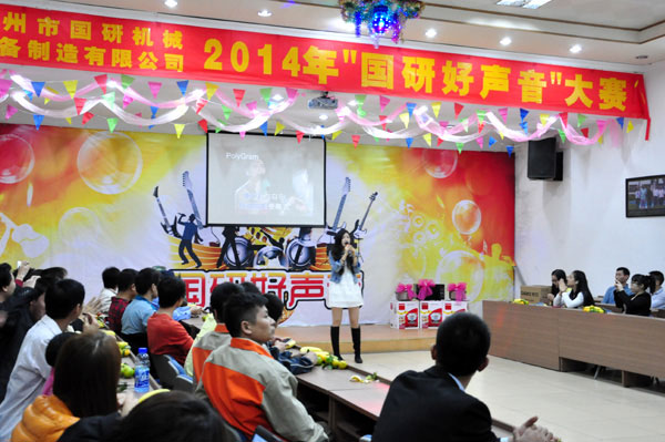 11月17日晚,在廣州市國(guó)研機(jī)械設(shè)備制造有限公司的多功能會(huì)議廳洋溢著一派節(jié)日的氣氛,員工們個(gè)個(gè)興高采烈一掃往日的疲憊,大家期待已久的“國(guó)研好聲音”決賽正在如火如荼地緊張進(jìn)行著。選手們的精彩演唱高潮迭起,讓賽場(chǎng)上的掌聲雷動(dòng)。那些平時(shí)默默無(wú)語(yǔ)工作在生產(chǎn)一線的員工在比賽中都展示了他們積極向上樂(lè)觀進(jìn)取的生活態(tài)度,迸發(fā)出了精彩的演出。選手們經(jīng)過(guò)2個(gè)多小時(shí)的激烈角逐,評(píng)委根據(jù)各個(gè)選手的音準(zhǔn)、音色、音調(diào)等多項(xiàng)的綜合因素公平打分,評(píng)選出大賽的各個(gè)獎(jiǎng)項(xiàng)。