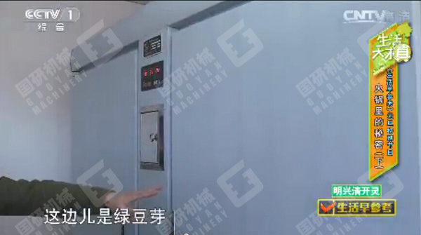 2015年1月3日早8:33,中央電視臺一套《生活早參考》( 20150103 元旦特別節(jié)目火鍋里的秘密) 播出了市場上毒豆芽的生產和危害,并重點播放了位于北京朝陽區(qū)東壩后街臨77號的良仕德(北京)餐飲管理有限公司所屬的快餐店使用國研豆芽機自行生產無公害豆芽的情景,國研牌無公害豆芽機在該節(jié)目中進行了詳細介紹和推崇。國研牌綠色無公害豆芽機成為抗擊毒豆芽最佳的無公害豆芽生產設備,受到食品行業(yè)的廣泛歡迎。