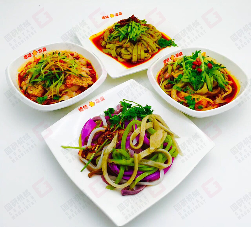 在經(jīng)濟(jì)高速發(fā)展和食品越來越多元化的今天,涼皮機(jī)如果只能生產(chǎn)涼皮一種產(chǎn)品將難以在市場上立足。國研多功能河粉機(jī)可根據(jù)不同的配置(例如可加裝拉腸粉機(jī)頭、卷粉機(jī)頭、自動(dòng)切片,自動(dòng)切條等多種方式)和原料出產(chǎn)不同樣式的產(chǎn)品,可直接倒入面粉打槳就可生產(chǎn)出面皮,釀皮;面粉經(jīng)過洗面后可生產(chǎn)出涼皮和面筋;大米磨槳?jiǎng)t可生產(chǎn)河粉、潮汕粿條、江西燙皮、貴州卷筒粉、云南切粉、漢中米皮、綦江米粉、筷子粉等;除此之外還能生產(chǎn)以玉米、紅薯、綠豆等淀粉類粉皮、扁粉、拉皮等等產(chǎn)品。國研多功能河粉機(jī)真正實(shí)現(xiàn)一機(jī)多用,適合不同客戶需求,銷售市場更廣闊!