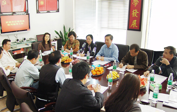 廣州市非公經(jīng)濟(jì)組織創(chuàng)先爭優(yōu)活動指導(dǎo)小組在國研機(jī)械公司調(diào)研(中為廣州市工商局副局長周邦華)