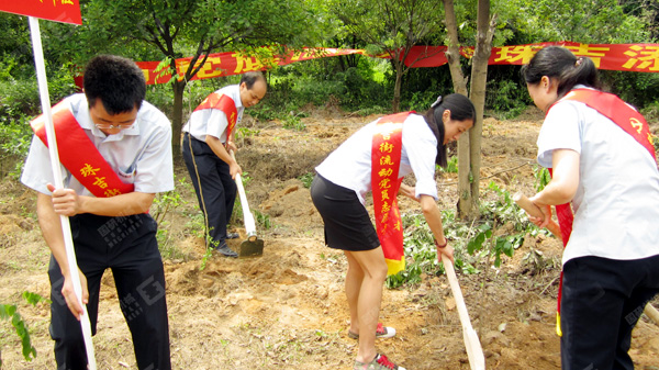簡單的啟動(dòng)儀式之后,大家高舉黨旗,直奔植樹活動(dòng)現(xiàn)場。各位黨員、入黨積極分子不顧炎熱,二人或三人一組,互相配合協(xié)作,有的揮鍬填土、有的扶苗加固、有的提水澆灌,現(xiàn)場一派熱火朝天的景象。在大家的共同努力下,二百多棵樹苗很快栽植完畢,原本毫無生機(jī)的荒地轉(zhuǎn)眼已是綠意盎然。一場及時(shí)雨之后,小樹苗更是棵棵充滿生命的活力。